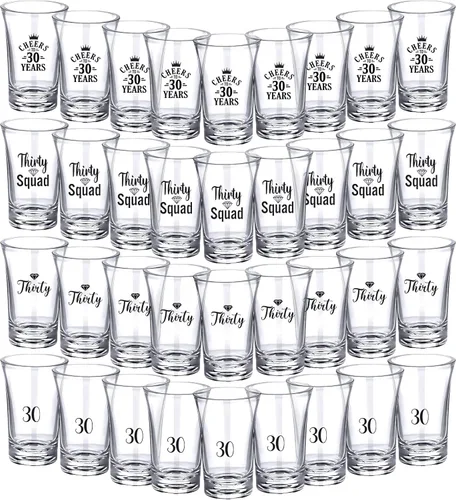Gran cantidad que satisface tus necesidades: hay 36 piezas de divertidos vasos de chupito en el paquete que recibirás al azar; sin duda se utilizarán bien, y combinarán bien con otros suministros de fiesta, cantidad suficiente para satisfacer tus necesidades de emparejamiento o reemplazo Diferentes citas en diferentes vasos: nuestras tazas acrílicas cuentan con diferentes citas temáticas de cumpleaños número 30, recibirás estos estilos al azar, bien pulidos y refinados, sensación suave al tacto, bien complementados con otras vajillas de cocina, añade estilo y clase a todas tus fiestas y eventos Construido para durar: este juego de vasos de chupito está hecho de material plástico de calidad, ligero pero resistente, no es propenso a deformarse o romperse, cómodo de usar y transportar muchas veces, lo que te proporciona un servicio duradero Tamaño adecuado para la mayoría de ocasiones: la abertura es de aproximadamente 1.69 pulgadas de diámetro, mientras que la parte inferior es de aproximadamente 1.22 pulgadas de diámetro, y la altura es de aproximadamente 2.6 in/2.6 pulgadas; la capacidad es de aproximadamente 1.2 onzas; el tamaño y la capacidad adecuados de los divertidos vasos de chupito para adultos son adecuados para casi todas las bebidas, lo que te proporciona múltiples opciones Una amplia gama de aplicaciones: estos divertidos vasos de chupito para adultos son ideales para sostener expresos, postres, decoraciones de fiesta; se pueden utilizar en bares, hoteles, restaurantes, hogar, cocina para celebrar inauguración de la casa, cumpleaños, boda, aniversario, jubilación, graduación, baby shower, despedida de soltero y despedidas de soltera, adecuados para la mayoría de festivales, como Año Nuevo, Navidad, Día del Padre, Día de la Madre, Día de San Valentín, Día de San Patricio, Halloween, etc