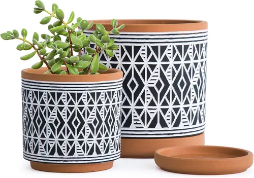 Pregunta sugerida sobre D'vine Dev Juego de 2 macetas de terracota, maceta con patrón de diamante, 4 y 6 pulgadas, maceta con orificio de drenaje y platillo ¿Este producto sí me sirve para lo que necesito?