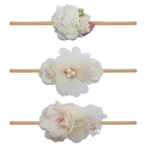 Diadema floral de nailon para bebé, corona de flores, banda elástica para el cabello, 3 piezas, accesorios para el cabello, regalo para niñas, 2#,