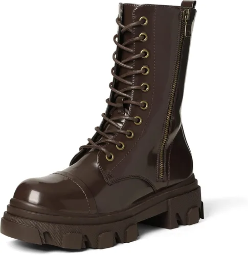 DREAM PAIRS Botas de combate para mujer con cordones, botas de media pantorrilla, tacón bajo, plataforma gruesa, botas con suela