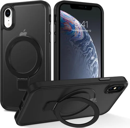 DUEDUE Funda magnética para iPhone XR con soporte de anillo [compatible con Magsafe], funda protectora de cuerpo completo, delgada, a prueba de Negro
