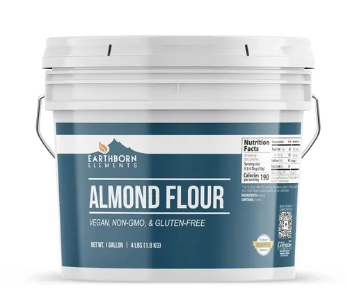 Earthborn Elements La harina de almendras viene en un cubo resellable Ideal para hornear sin gluten Uso para masa de pizza, magdalenas, galletas, pasteles, panes y más Puro y sin diluir: nunca aditivos o rellenos Empaquetado en Estados Unidos