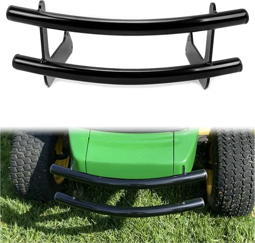 Compatibilidad: Protector de parachoques delantero compatible con John Deere 325, 335, 345, 355, 355D, GX325, GX335, GX345 y GX355 Mejor protección: este parachoques no solo agrega un aspecto agresivo a su cortadora de césped, sino que también puede proteger eficazmente la parte delantera del tractor de colisiones, lo que reducirá las lesiones al tractor Alta resistencia: Hecho de acero resistente para una fuerte durabilidad y larga vida. Acabado superficial: Electroforesis+recubrimiento en polvo. Color: negro Instalación: Perno directo en. Fácil de instalar sin taladrar ni cortar. Instrucciones no incluidas. La instalación profesional es altamente recomendable El paquete incluye: recibirás 1 parachoques delantero, otros como se muestra en las imágenes