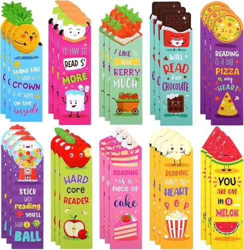 Aspecto hermoso: estos divertidos marcadores para niños están bellamente diseñados y contienen 10 estilos, a saber, piña, malvavisco, fresa, chocolate, pizza, chicle, pastel, palomitas, sandía y así sucesivamente, a sus pequeños les gustarán mucho y disfrutarán aún más de la lectura Cantidad suficiente para satisfacer tus demandas: recibirás 30 marcadores perfumados de 10 diferentes fragancias y estilos, 3 piezas de cada fragancia, número suficiente y variedad de estilos para satisfacer tus diversas necesidades, y también puedes compartir con otros Recompensa a tus hijos: nuestros marcadores de libros para adolescentes son regalos ideales para estudiantes o tus hijos, es una buena manera de recompensarlos por lograr objetivos personales o progresar, lo que les hará tener una actitud positiva hacia la lectura y estar más interesados en la lectura Diseño de efecto de aroma: nuestros marcadores para estudiantes vienen con aroma de larga duración y varias ilustraciones, son divertidos y llamativos, lo que puede hacer que tu tiempo de lectura sea más agradable, ayudar y animar a los jóvenes a los que les gusta leer Tamaño adecuado: cada uno de los marcadores de aula mide aproximadamente 1.8 x 6.1 pulgadas / 4.5 x 15.6 cm, de colores brillantes y con impresión a doble cara, compacto y ligero, ideal como marcador para tu lectura