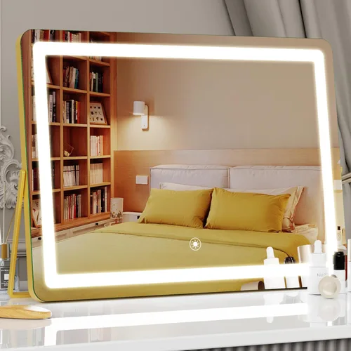 Gvnkvn Espejo de tocador luminoso con luces, espejo LED de maquillaje de 14 x 12 pulgadas, espejo Hollywood, 3 modos de luz, control táctil