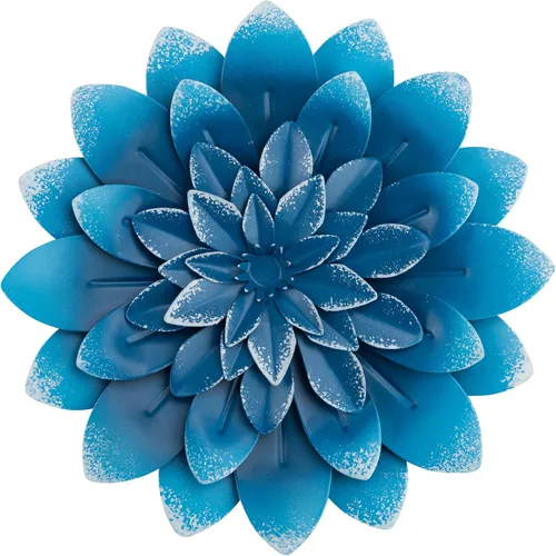 Everydecor Decoración de pared de flores de metal suculentas, azul, pintadas a mano, decoración artística de flores 3D para sala de estar,