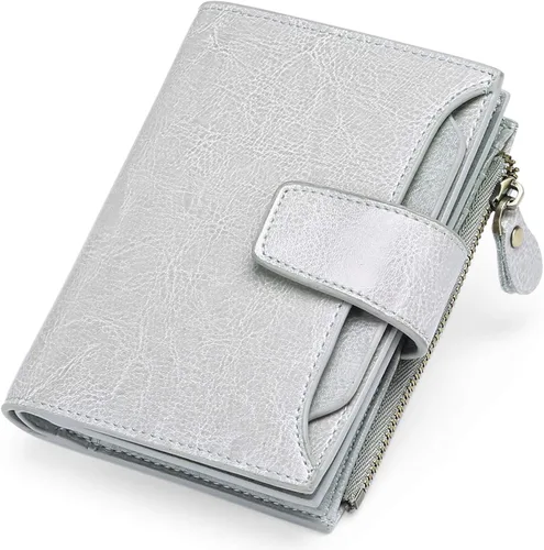 FALAN MULE - Cartera de cuero auténtico para mujer, pequeña, plegable y compacta, con bloqueo de interferencia de radiofrecuencia (RFID)