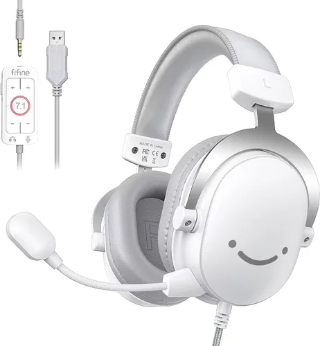 Conectividad USB/3.5mm] Eleva tu configuración de juego con un auricular para juegos USB de color blanco, combinando elegancia y funcionalidad para jugadores que hacen streaming. Mantente conectado en PC/PS5 con el auricular USB para PC, con una entrada de 3,5 mm que ofrece compatibilidad con Xbox, controlador, switch. [Aventura de audio inmersiva] Sumérgete en el mundo del juego con sonido envolvente 7.1. El auricular para juegos con cable ofrece un audio meticulosamente diseñado para entusiastas de los juegos. Control de audio total: toma el control de tus ajustes de audio sin esfuerzo utilizando la caja de control USB en los auriculares de transmisión USB, lo que te permite un fácil acceso para ajustar el volumen de los auriculares, el volumen del micrófono y las funciones de silencio del micrófono. Comunicación nítida: Disfruta de una claridad de voz excepcional durante intensas sesiones de juego con el micrófono desmontable del auricular gamer de 3.5mm, asegurando una coordinación y comunicación efectiva del equipo. [Comodidad] Disfruta de la comodidad de juego extendida con diademas de material suave y orejeras de los auriculares de PC con cable, proporcionando un ajuste cómodo y agradable durante tus maratones de juego.