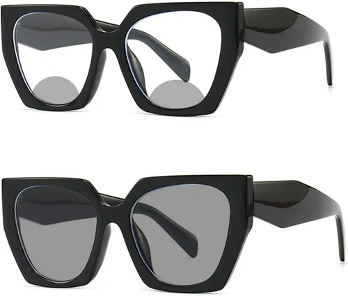 Gafas de lectura bifocales con montura cuadrada de ojo de gato de gran tamaño: lente transparente regular en la parte superior con lectura en la parte inferior perfecta para lectura al aire libre y visión a distancia. Ya no tendrás que llevar varios pares de lentes. Las gafas fotocrómicas tienen lentes que cambian de tinte según el clima o el entorno. El beneficio de las lentes fotocrómicas es que en climas opacos y nublados o entornos más oscuros (como correr o andar en bicicleta por bosques o temprano o tarde en el día) se iluminarán. Pero en condiciones brillantes y soleadas se oscurecerán. Las lentes fotocromáticas son más populares entre ciclistas, corredores, esquiadores, entusiastas del tenis y la lectura al aire libre. Material de alta calidad: material ligero, agradable al tacto, respetuoso con el medio ambiente, brillante y no se decolora; kit de montaje de alta calidad para garantizar la apertura y cierre suaves de las patillas. Ocasión: el estilo de moda se adapta a todos los tipos de piel, caras y aspectos. Gafas de lectura antifatiga ocular/antiarañazos/antimanchas para el uso diario. Ideal para trabajar, leer, escuela y actividades al aire libre. Lo que obtienes: anteojos, funda para lentes, bolsa para lentes, paño para lentes y servicio al cliente amigable. No dudes en ponerte en contacto con nosotros si tienes alguna pregunta sobre estos lentes. Haremos todo lo posible para resolverlo por ti.