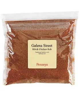Un delicioso condimento tradicional de estilo sureño con toques de salvia, nuez moscada y pimiento rojo de cayena. Para costillas de cerdo, frote el condimento, 1-2 cucharaditas. por libra. Agregue un poco más a la mitad de la cocción. Para el pollo use un poco menos. Para una sabrosa salsa barbacoa, mezcle 1 TB. en 1 taza de salsa de tomate o incluso salsa de tomate. Realmente bueno para las alas de pavo a la parrilla o asadas: corte las alas en secciones (las llamamos remaches) y espolvoree mucho la calle Galena antes de cocinar. Mezclado a mano de: sal en escamas, azúcar, pimienta negra, pimentón, nuez moscada, salvia y pimiento rojo de cayena.