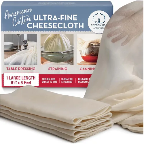ELIGE ALGODÓN CULTIVADO EN ESTADOS UNIDOS - para resistencia y pureza, una estopilla tejida de algodón cultivado por agricultores locales que cumple con el estándar Cotton USA La única solución de colado que necesitas: colador fino reutilizable para leche de nueces, bolsas de gelatina, para filtrar vino, miel, aceite, jugo, café y colar yogur DA VIDA A LAS IDEAS DE DECORACIÓN CON PANO DE QUESO - haz manteles de mesa, disfraces de fantasmas con paño espeluznante de Halloween, elabora bolsas de estopilla para pan y mascarillas SUFICIENTE TEJIDO PARA TERMINAR EL TRABAJO - la gran longitud de 6 x 6.5 pies es perfecta para bolsas coladoras de pintura, bolsas de fermentación de granos, colador de kava, bolsas de leche, calcetines de sopa De nuestra cocina a la tuya: somos cocineros y artesanos y probamos y utilizamos todos nuestros productos. Compra esta gasa con la confianza de que hará el trabajo