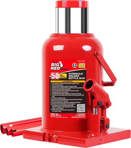 El gato hidráulico de botella Torin BIG RED T93007 de perfil bajo y robusto está diseñado para uso residencial y comercial. Está soldado industrialmente y fabricado con una estructura de acero aleado forjado en caliente, es ideal para ofrecer calidad y durabilidad. La estructura soldada interna y externa de acero mantendrán al gato hidráulico de botella libre de fugas y te proporcionarán una estructura más resistente en general. La estructura totalmente soldada está diseñada para un uso comercial contundente, lo que permite que las cargas grandes sean fáciles de levantar. Una base ancha y robusta añade estabilidad y resistencia. El rango de elevación es de 9 7/16 a 14 9/16 de pulgada con una capacidad de 30 toneladas (60 000 libras). Cuenta con una bomba de presión de acción deslizante de alta calidad diseñada para levantar con mínimo de músculo y esfuerzo y tiene una válvula integrada de derivación de aceite y sobrecarga que protege el sistema hidráulico de extenderse más allá de sus límites de viaje. La hidráulica se alimenta con un aceite de alta calidad, que ofrece una mejor resistencia a la corrosión y una flexibilidad de alta y baja temperatura, lo que permite que la unidad funcione a temperaturas entre 40 °F y 105 °F. El pistón utiliza un anillo de sellado de poliuretano estilo Y con anillo de respaldo, evitando que la carga caiga lentamente. Este potente gato de botella es ideal para levantar vehículos, camiones, SUV, vehículos agrícolas, maquinaria pesada y equipos industriales. También se puede utilizar para usos militares, entornos agrícolas e industriales donde el equipo recibe usos más pesados. Esta unidad ha sido probada en fábrica al 100% en cuanto a fiabilidad y seguridad para satisfacer y cumplir las normas de seguridad ASME PASE. -