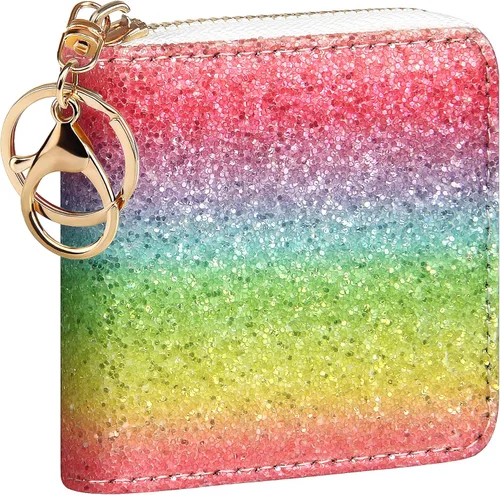 GEEAD - Monedero pequeño con purpurina para mujer o niña, con anillo para llavero