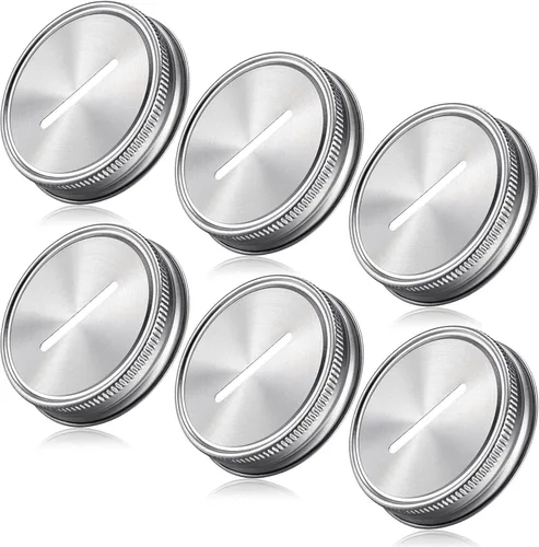 Material fiable: estas tapas de banco de metal con ranura para monedas están hechas de acero inoxidable, hermoso aspecto plateado, no se oxida ni se rompe fácilmente, duraderas y fiables, que son reutilizables, y por favor, limpia la tapa después de lavarla a mano Prácticas de aplicar: estas tapas de ranura de monedas de acero inoxidable son fáciles de instalar, solo tienes que ponerlas en los frascos de conservas adecuados, luego se hace una simple alcancía, que es más fácil de instalar y quitar, adecuada para monedas de tienda en casa Delicados regalos: estas tapas de monedas plateadas se pueden aplicar para hacer tu propia alcancía, que son regalos delicados para tus familiares, niños o seres queridos, en Acción de Gracias, Halloween, cumpleaños, Navidad u otras ocasiones, para mostrar tu amor y cuidado Personas adecuadas: estas tapas de ranura de metal para monedas pueden ayudar a niños y niñas a desarrollar un buen hábito de recoger sus cuentas, conchas, canicas y una buena manera de enseñar habilidades matemáticas a los niños, y también son adecuadas para la mayoría de los adultos para almacenar monedas Amplias aplicaciones: la amplia ranura de los frascos de monedas puede caber para recoger monedas, cambios, billetes doblados, botones adicionales que vienen con ropa, conchas, canicas, tarjetas de visita o cualquier colección que pueda ayudarte a organizar los pequeños productos
