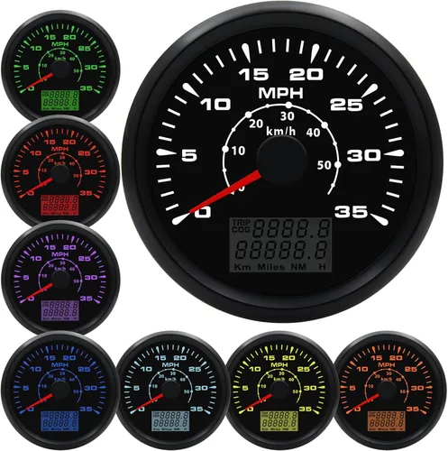 MODELOS COMPATIBLES: Velocímetro GPS odómetro para todos los coches, tractores, furgonetas, motocicletas, carreras, etc. La señal del velocímetro GPS viene directamente del receptor de señal satelital (sensor de velocidad GPS). El velocímetro mide con precisión la velocidad de desplazamiento y el kilometraje de vehículos y barcos FUNCIONALIDAD DEL VELOCÍMETRO: El velocímetro GPS para barco muestra Velocidad Actual, TRIP/COG (elige una), ODO (no se puede reiniciar). Rango de indicación: 0-35 MPH (0-50 Km/h). Con diseño de voltaje de trabajo ultra amplio (voltaje de operación a largo plazo: 9-32 V). Corriente de funcionamiento: ≤100 mA (24 V); Temperatura de funcionamiento: -30 ~ +75 °C; Temperatura de almacenamiento: -40 ~ +85 °C CALIDAD EXCEPCIONAL: El medidor de velocidad en mph tiene las ventajas de alta precisión, rápida confirmación de ubicación y corto tiempo de arranque. El medidor de velocidad marino es impermeable y a prueba de polvo con grado IP67. Con cristal curvo (con función antivaho), cubierta frontal de 316L. Se puede utilizar durante mucho tiempo incluso en ambientes ácidos, alcalinos y húmedos INSTALACIÓN FÁCIL: Antes de instalar el velocímetro GPS digital, abre un agujero de 85 mm (3 3/8 pulgadas) y 7 cm (3 pulgadas) de profundidad, coloca el indicador en él y atornilla. El velocímetro tiene varios colores de retroiluminación: rojo, verde, azul, blanco, amarillo, kelly, naranja, morado, puedes elegir el color presionando el botón trasero del medidor El paquete incluye: 1 x velocímetro GPS; 1 x antena GPS; 1 x arnés de cableado; 1 x manual de instrucciones. Cables de conexión: Rojo: +9-32VDC; Naranja: Luz de fondo (+); Azul: Tierra (-). Si tiene alguna pregunta sobre el producto, háganoslo saber