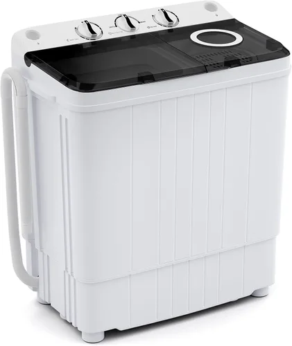 [Tinas gemelas para lavar y centrifugar] Aumenta la eficiencia y ahorra tiempo y energía valiosos con la lavadora de tinas gemelas de 17.6 libras, lo que te permite manejar múltiples cargas al mismo tiempo o por separado. El tambor de la lavadora puede soportar hasta 11 libras y el centrifugado hasta 6.6 libras. 【Operación amigable para el usuario】La lavadora está diseñada con 3 perillas individuales, lo que te da control total sobre el tiempo de lavado, los modos y el tiempo de centrifugado, haciendo que la lavandería sea muy fácil. Ofrece ciclos de lavado suaves y normales para diferentes prendas de vestir, como camisetas, calcetines, pantalones y ropa interior. [Motores duales de alta potencia] Disfruta de una experiencia de limpieza superior con el motor de lavado de 240W y el motor de centrifugado de 120W, proporcionando un rendimiento de lavado excepcional mientras reduce el consumo de agua y energía. [Diseño de fácil drenaje] Equipada con una manguera de drenaje de 3.2 pies y un kit de manguera de entrada de 4 pies, la lavadora portátil ofrece más flexibilidad en la instalación. La bomba de drenaje integrada permite una fácil eliminación del agua. [Conveniente para tu vida] La mini lavadora cuenta con una tapa transparente para un fácil control de tu lavado, y un filtro de pelusa extraíble para un mantenimiento sin complicaciones. Su tamaño compacto es adecuado para dormitorios, casas rodantes y apartamentos.