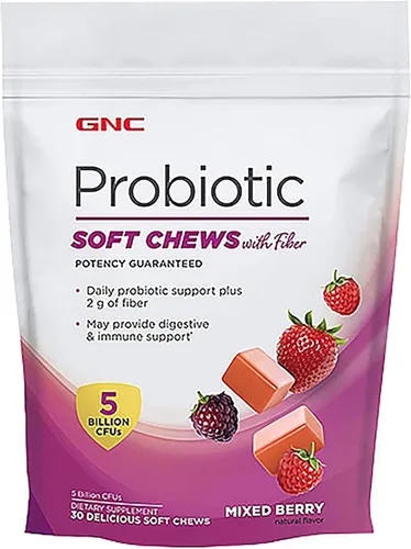 GNC Masticables blandos probióticos con fibra, bayas mixtas, 30 masticables, apoya la salud digestiva e inmunológica