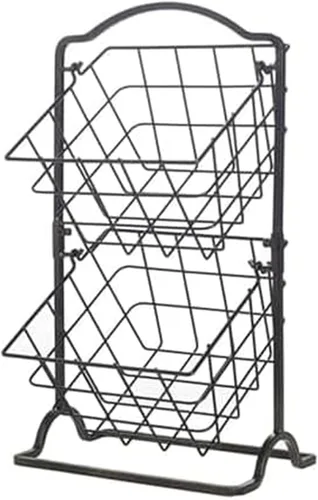 Esta cesta de 2 niveles te permite maximizar el espacio en tu cocina Mide 17 1/2 pulgadas de altura Hecho a mano de hierro para una belleza duradera incluso bajo un uso riguroso Cuenta con un diseño atemporal que complementa cualquier decoración Limpiar con un paño suave y húmedo Fácil montaje en 1 paso. No se necesitan herramientas.