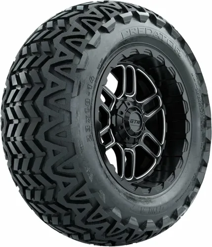 GTW Combo de ruedas y neumáticos para carrito de golf de 14 pulgadas | GTW Titan negro mate/ruedas mecanizadas en neumáticos Predator todo terreno