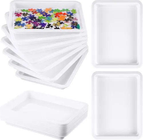 Suficientes bandejas apilables: el paquete contiene 10 piezas de bandejas de clasificación de rompecabezas, que te permiten organizar piezas por color, patrón y forma, lo que te ayuda a abordar rápidamente las piezas de borde, organizar ese desafiante patrón geométrico Capacidad adecuada: la bandeja de rompecabezas se adapta a hasta 1500 piezas de rompecabezas, lo que puede ayudar a los solucionadores a clasificar los rompecabezas fácilmente, para que puedas abordar tu tamaño favorito, sin necesidad de empujar varias mesas juntas Material de calidad: la bandeja clasificadora de rompecabezas está hecha de plástico de calidad, que es resistente y confiable de usar, no se deshilacha ni rompe fácilmente, con un agarre cómodo que hace que sea fácil para los más pequeños sostenerlos y transportarlos de forma independiente Práctico de usar: las bandejas clasificadoras de piezas de rompecabezas tienen 1 pulgada de profundidad, lo que puede mantener tus rompecabezas organizados sin ensuciar; y el borde elevado es agradable para contener pintura, arte de arena, cuentas, para reducir derrames y desorden Usos versátiles: la superficie de las bandejas de rompecabezas es fácil de limpiar con jabón suave y agua, y se pueden apilar juntas, adecuadas para el aula, guardería, jardines de infancia, escuela en casa, etc., ayudando a organizar y ordenar rompecabezas, experimentos científicos, etc