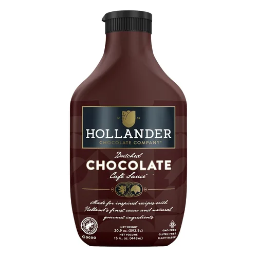 Hollander Dutched Chocolate Café Sauce™ | Apto para veganos, sin OMG, sin gluten/soja, sin jarabe de maíz, botella exprimible de 15 onzas líquidas