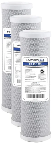 Hydronix CB-25-1005 Sistema de RO y Beber para toda la casa NSF Filtro de agua de bloque de carbono de coco 2.5 x 10-5 micrones (paquete de 3)
