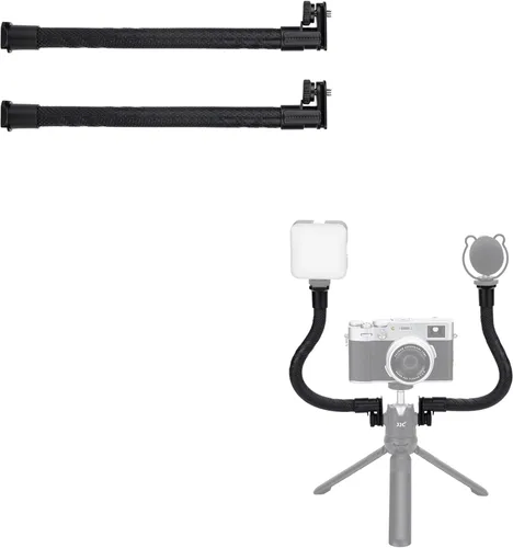 Diseñado para trípode u otros dispositivos con agujero de rosca de 1/4"-20 Con 2 soportes de zapata fría en la parte superior, te permite conectar luz LED o micrófono para disparar y grabar Suave y flexible, puedes plegar o doblar fácilmente los brazos de extensión en diferentes direcciones para satisfacer tus necesidades La carcasa de silicona proporciona una sensación cómoda en la mano Accesorios útiles para vlog, transmisión en vivo, selfie con un trípode