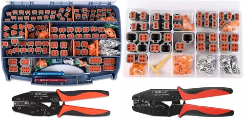 Kit de valor DT de conector Deutsch: 6 tipos de conectores y cuñas que van desde 2 a 12 cavidades, tamaño 16 pin/zócalo 14-18 AWG, tapones de sellado, herramienta de extracción de contacto de plástico, herramienta de extracción de selección DRK-RT1, herramienta de prensado de conectores Deutsch ACT-LY-16DT. Conectores DT: los conectores de cable eléctrico de 2 3 4 6 8 y 12 pines 14-18AWG son impermeables, a prueba de polvo, resistentes a la corrosión y al desgaste, sin pérdida de cualidades electrónicas o fugas después de instalarse. Montaje opcional en línea, brida o PCB. 【Tamaño 16 Contacto estampado y contacto formado】: Pin/socket contacto níquel total, barril de alambre estañado. Se puede conectar por prensado y soldadura, aumentar la soldabilidad, resistencia a la corrosión y reducir la resistencia al prensado. Herramienta de prensado de contacto estampado: esta herramienta engarzadora de terminales de cable es adecuada para engarzar terminales de barril abierto # 16. El alicates cirmp de alambre de trinquete puede engarzar terminales de barril abierto de calibre 16, AWG 18-14. Herramienta de extracción de contacto multifuncional: esta herramienta se puede utilizar para quitar wedgleocks y también liberar pines y enchufes en varios conectores de la serie Deutsch. Es adecuado para DT, DTP, DTM, DRB, DTV y STRIKE Series. Es equivalente a la herramienta de extracción DT-RT1.