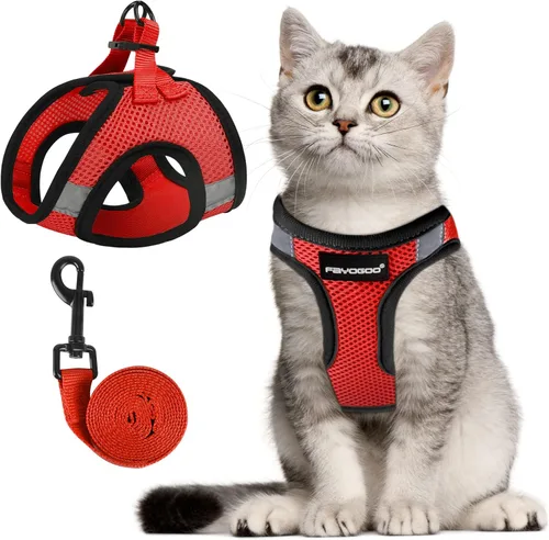 CONSEJOS PARA EL ARNÉS DE GATO: ¡Ahora estamos actualizando nuestro arnés para gatos con más opciones de tamaño y color! Mide el pecho de tu gato y elige el tamaño adecuado, consulta la tabla de tallas antes de comprar nuestro juego de arnés y correa para gatos, puede haber algunas diferencias entre las diferentes razas de gatos. Este arnés también es adecuado para perros pequeños, mide el pecho de tu perro antes de comprar este arnés y correa a prueba de escape ARNÉS PARA GATOS A PRUEBA DE ESCAPE: Nuestro arnés para gatos tiene un velcro pegajoso fuerte, por lo que puede envolver a los gatos firmemente a 360 grados. Junto con la cincha gruesa y firme, que no es fácil de romper, la doble protección hace que sea difícil para los gatos escapar. Correa de 5 pies de distancia suficiente para permitir que los gatos se muevan libremente y jueguen en el césped Ultraligero y cómodo: este arnés para gatos y correa a prueba de escape está hecho de tela de malla transpirable, el chaleco pesa solo 1.5 onzas, muy ligero y cómodo de llevar. El gato no necesita soportar peso en absoluto. Con borde acolchado suave, el gato puede usar este arnés todo el día. Juego de correa y arnés para gatos, perfecto para gatos/perros mientras caminas y haces senderismo durante todo el año Fácil de llevar y seguro por la noche: a diferencia de otras marcas de arneses que son problemáticos de llevar, tu gato puede ponerse el arnés de paseo FAYOGOO en un solo paso. Muy fácil de llevar y cómodo de quitar. Además, el diseño de tira reflectante de este arnés grande para gatos permite que tu gato camine de forma segura por la noche Combinación clásica: este arnés y correa para gatos cuenta con un diseño de estilo de camiseta interior de color sólido con colores brillantes y vibrantes, por lo que es un regalo único para cachorros/gatitos/gatitos