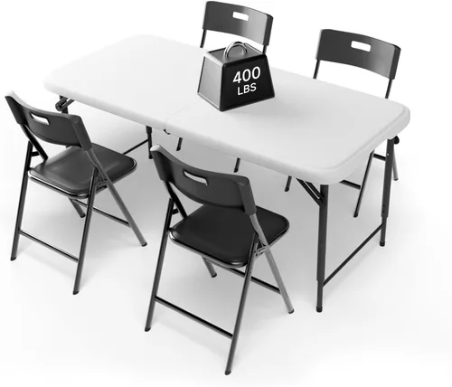 Juego de mesa plegable de 4 pies con 4 sillas plegables, mesa resistente de 400 libras y sillas de 330 libras, paquete de muebles plegables