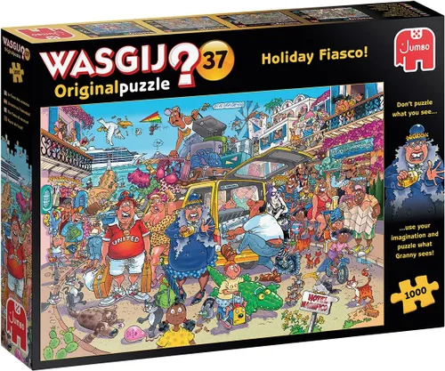 Un rompecabezas original de Wasgij de 1,000 piezas WASGIJ ORIGNAL - Wasgij Original es el "¿qué están mirando?" concepto de rompecabezas donde tienes que usar tu imaginación y las pistas proporcionadas para reconstruir lo que los personajes de la imagen impresa en la caja están mirando. La imagen del rompecabezas ha sido ilustrada por el artista original de Wasgij Graham Thompson El rompecabezas terminado mide 27 x 19 pulgadas (aproximadamente) Producido con cartón reciclado de alta calidad
