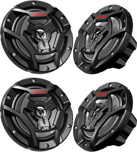 Par de altavoces JVC CS-DR6200M de 6.5 pulgadas, 300 W, de 2 vías, ATV Powersports para motocicleta Altavoces coaxiales de 2 vías, woofers resistentes al agua Parrillas resistentes a los rayos UV, ninguna barra delgada le da el sonido de mente abierta Respuesta de frecuencia: 60 - 18,400Hz, Capacidad de manejo de energía (RMS): 50W, Capacidad de manejo de energía (Potencia máxima): 150W, Impedancia: 4 ohmios Nivel de presión sonora: 87dB, Peso (rejilla): 0.82kg (1.9lbs), Masa del imán: 230g (8.1oz), Diámetro de corte: 5", Profundidad de montaje: 2.421 in (2-7/16")