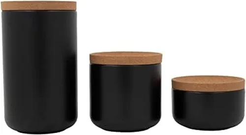 El juego incluye: botes de 1/2 cuarto, 1 cuarto y 2 cuartos de galón con tapas Almacenamiento elegante: organiza y almacena azúcar, harina, granos de café, bolsitas de té, arroz y mucho más Diseño atemporal: la construcción de cerámica y corcho aporta un aspecto moderno a tu encimera o mesa Mantén la comida frescas: las tapas de corcho evitan que el azúcar se endurezca y otros alimentos se vuelvan rancios Apilable: apila botes para ahorrar valioso espacio en el mostrador o armario