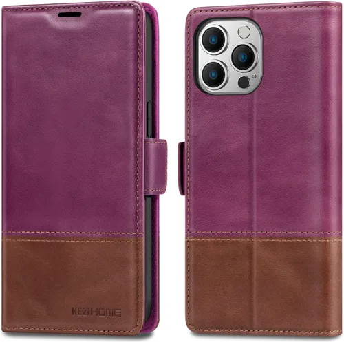 KEZiHOME Funda tipo cartera para iPhone 14 Pro, de piel auténtica, bloqueo RFID, ranuras para tarjetas, soporte, a prueba de golpes, funda magnética