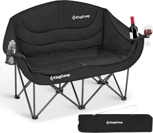 KingCamp Silla de campamento doble, de gran tamaño, resistente de 660 libras, sofá biplaza para adultos, portátil, plegable, XL, sofá para 2