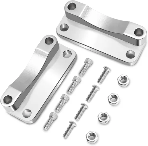 Máximos estándares: Las elevaciones de guardabarros delanteros cromados con soporte de espaciador fabricadas con aluminio de palanquilla macizo de alta calidad, de alta dureza, resistentes a la corrosión, excelente rendimiento, buen efecto de oxidación, duradero, para un uso prolongado sin deformación Ajuste: Este kit relocalizador de soporte de espaciador para el guardabarros delantero es compatible con modelos Harley Touring 1993-2013, como Electra Glide, Road Glide, Road King, Street Glide, Tri Glide, Ultra Classic, Ultra Limited, también es compatible con FLHR 1993-2013, FLHT 1995-2010, FLHTCU 1993-2013, FLHTK 2010-2013, FLHX 2006-2013, FLTR 1998-2009 Mayor Espacio de Liberación: Este elevador de guardabarros delantero de 21" eleva el guardabarros 20 mm hacia arriba para mejorar el espacio libre y reducir la acumulación de lodo y residuos, proporciona mayor protección contra el lodo, piedras y arena–aumenta la efectividad del guardabarros delantero, la altura adicional entre la rueda delantera y el guardabarros le da más "rodadura" Reposicionar el guardabarros delantero: el soporte de reubicación del elevador del guardabarros delantero de la rueda se monta para levantar el guardabarros delantero OEM original para adaptarse a una rueda delantera de 21 pulgadas, asegurando que no haya rozamiento o contacto del neumático con el guardabarros delantero. Es la forma más económica de actualizar la rueda delantera a 21 pulgadas, sin cambiar el guardabarros y con mayor seguridad para ruedas más grandes Fácil de instalar: Los espaciadores del guardabarros delantero del Street Glide se atornillan directamente, no se requiere modificación ni reperforación, rosca correcta y longitud precisa, no es necesario comprar por separado, el paquete incluye: 1×par de kit elevador de guardabarros delantero, 4×tuercas, 8×tornillos, si faltan piezas de montaje