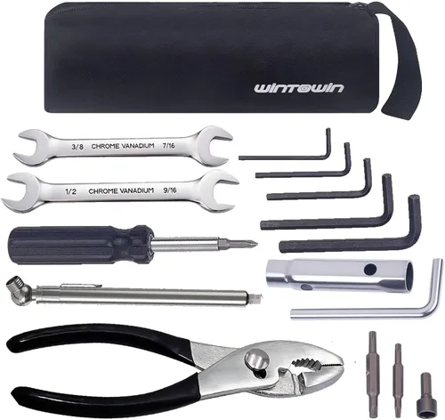 【KIT INCLUYE】: Contiene la mayoría de las herramientas de reparación para motocicletas Harley: : Llave de extremo abierto de 3/8 x 7/16", Llave de extremo abierto de 1/2 x 9/16", Destornillador de tuercas de 10 mm, Llave de bujía combinada de 5/8" y 13/16" con palanca, Destornillador mini 5-en-1 con bits Torx T20, 25, 27, 30, Llaves hexagonales: 1/8, 5/32, 3/16, 1/4, 5/16", Medidor de presión de neumáticos de 10-50 psi, Alicates de boca deslizante de 5.5" 【BOLSA PORTÁTIL】: Un bonito surtido de herramientas. Bonito paquete compacto para guardar en una bolsa. Muy conveniente para llevar y almacenamiento debajo del asiento. 【ADAPTA PARA】: Este kit de herramientas ultracompacto para motocicletas compatible con motocicletas Harley Davidson. Este kit será perfecto para realizar reparaciones básicas Gran opción de regalo: el kit de herramientas de reparación de motocicleta lo convierte en un fantástico regalo para familiares y amigos. como regalo del Día del Padre y un regalo de Navidad y Año Nuevo. 【SERVICIO POSTVENTA】: Por cualquier razón por la que no estés completamente satisfecho, no dudes en ponerte en contacto con nosotros y solicitar un reemplazo o reembolso