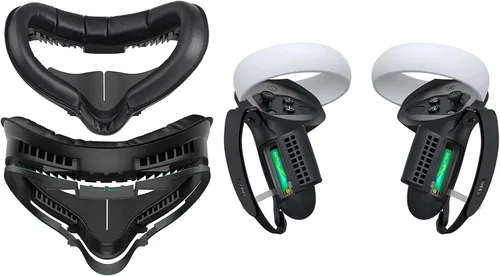 Resuelve el problema del reemplazo de la batería: el diseño de apertura de la batería te permite reemplazar fácilmente la batería sin quitar toda la cubierta de los agarres del controlador. Solo necesitas abrir la abertura del compartimento de la batería y luego tirar de la pestaña de plástico especialmente diseñada para reemplazar fácilmente la batería. Consejos: la pestaña de plástico de la batería se coloca debajo de la batería Protege perfectamente el controlador: la cubierta de agarre del controlador táctil de diseño KIWI evita que los controladores táctiles se tiren mientras juegas, y protege los controladores táctiles de arañazos y suciedad, lo que protege perfectamente el controlador para Meta/Oculus Quest 2 💡 Interfaz facial de fitness mejorada para Oculus/Meta Quest 2: basado en la interfaz facial de diseño KIWI Version-1.0, hicimos que las optimizaciones se centren en dos puntos clave. En primer lugar, se agrega el espaciador de gafas personalizado, gracias a las sinceras sugerencias de nuestros clientes de que el espaciador de gafas es necesario para el juego. La segunda es la pieza nasal mejorada para resolver el problema de fugas de luz alrededor de la zona de la nariz. El diseño KIWI siempre presta mucha atención a tus preocupaciones para ofrecerte mejores experiencias Almohadilla de cuero cómoda, experiencia completamente inmersiva: 1. La almohadilla facial gruesa de 0.63 pulgadas funciona mucho mejor en reducción de presión que otros. 2. Fabricado con piel sintética de alta calidad, es suave y resistente al sudor, elimina tu preocupación por la alergia o la decoloración. 3. La esponja de alta elasticidad se puede compactar hasta 0.3 pulgadas de grosor, te permite más cerca de tu pantalla y aporta un mejor FOV. 4. La esponja se fija dentro del cuero, evita deslizarse incluso durante mucho tiempo 💡 Almohadilla de tela deportiva, mejora de la higiene mejorada: excepto las 2 almohadillas faciales a prueba de sudor para que puedas compartir con otros, también hay una almohadilla de espuma que absorbe el sudor rápida para uso físico de realidad virtual. La almohadilla deportiva está hecha de esponja absorbente especial y tela de ropa deportiva. En un lado, garantiza la respiración y la absorción del sudor, ya no te preocupes por el vapor. Por otro lado, es lavable a máquina, higiene mejorada más fácil. Absolutamente una mejor opción para fitness de realidad virtual