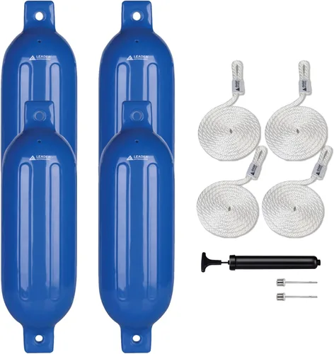 Leader Accessories Paquete de 4 protectores de parachoques de barco con doble ojo, incluye líneas de guardabarros de 3/8 pulgadas y bomba para inflar