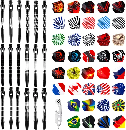 Suficiente para jugar: recibirás 30 ejes de dardos para punta de acero, 30 anillos o anillos de dardo, 120 piezas de dardos para dardos de punta suave y 1 llave de dardos, la combinación completa puede satisfacer tus diversas necesidades Estabilidad y durabilidad: el eje para dardos cuenta con un orificio de bloqueo, para que puedas fijar el eje fácil y firmemente al barril de dardos, mejorando la estabilidad y reduciendo la molestia de volver a apretar, no se cae fácilmente durante el uso Lanzar mejor rendimiento: equipado con anillos tóricos de eje de dardos, los ejes de punta de acero para dardos pueden volverse más suaves y fluidos durante el lanzamiento y el vuelo, los vuelos de dardos para dardos de punta suave pueden ayudar a aumentar la velocidad y reducir el arrastre, para permitirte disfrutar de la diversión de los dardos Tamaño adecuado y compacto: los ejes de dardos de aluminio son de aproximadamente 2.1 pulgadas y aproximadamente 2 pulgadas/1.969 in, portátiles e ideales para sostener, ideal para la mayoría de las personas para jugar Agradables tanto para interiores como para exteriores: los accesorios de dardos son adecuados para desarrollar muchas actividades en interiores y exteriores, puedes jugarlos en tu hogar, oficina, dormitorio, sala de estar, patio trasero, jardín, parque infantil, gimnasio deportivo y más, para disfrutar de la diversión con tus compañeros deportivos