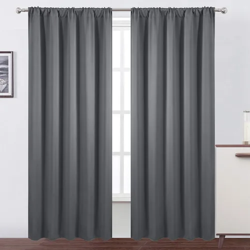 LEMOMO Cortinas opacas grises, 52 x 84 pulgadas, juego de 2 paneles de cortinas opacas con aislamiento térmico para oscurecer la habitación para