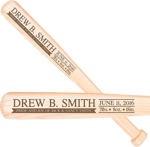 Personalización gratuita: Proporcione sus datos en la pestaña amarilla personalizada Regalo de anuncio de nacimiento de bebé Se puede personalizar y grabar a medida solo para ti Tamaño: 18" largo x 1.75' de diámetro hecho de madera de fresno Regalo de bate de béisbol hecho a mano en los Estados Unidos Diseñado exclusivamente para 2015 LifeSong Milestones