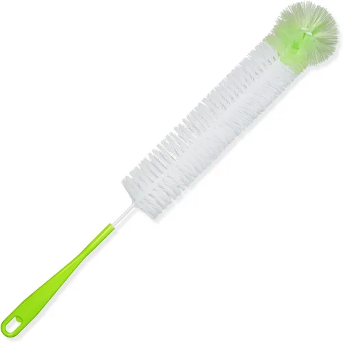 Cepillo largo para botellas: cepillo extra largo de 18 pulgadas x 2.17 pulgadas de diámetro de ancho. Este limpiador de botellas es perfecto para limpiar el interior de las botellas, incluso en el fondo más profundo. Pero un círculo de alambre hace que sea difícil caber en la botella con una pequeña abertura. Material duradero de uso sencillo: hecho de materiales de alta calidad, con cerdas duraderas y asas de agarre cómodo que proporcionarán muchos años de uso. Este cepillo de limpieza de botellas está diseñado con un cuerpo alargado, por lo que es más conveniente sostenerlo al limpiar. Potente capacidad de limpieza: las cerdas son rígidas, duraderas y fuertes, dan una buena cantidad de abrasión cuando se trata de eliminar las manchas endurecidas. Diseñado con más cerdas en la parte inferior del cepillo, ayuda a limpiar bien la parte inferior de tu botella. Puede limpiar bien todo el interior de una botella. Amplia aplicación: el cepillo duradero lava fácilmente el interior de botellas de agua, decantadores, utensilios de preparación de acero inoxidable o botellas anchas, frascos de vidrio, jarrones, teteras, vasos, botellas de plástico, botellas de agua, botellas EZ Cap, jarras, jarras, tarros de salsa, etc.