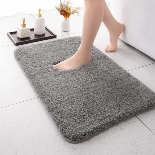 YIHOUSE Thick Microfiber Bathroom Rug Soft Bath Mat for Bathroom Machine Washable Non Slip Absorbent Shower Carpet Rug 24" X 36" Grey