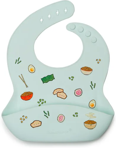 APTO PARA EL ESTANTE SUPERIOR DEL LAVAVAJILLAS - Este babero de silicona suave como la mantequilla y resistente al agua es resistente a las manchas. Fácil de limpiar y secar; perfecta para la hora de la comida. Seguro para el bebé: fabricado con 100% silicona de grado alimenticio y libre de BPA, PVC, ftalatos, plomo y cadmio. Seguro y de alta calidad para tu precioso pequeño. BOLSILLO AMPLIO Y PROFUNDO PARA TODO - Nuestro bolsillo para alimentos es amplio y se sitúa debajo de la bandeja de la trona, perfecto para recoger alimentos, migas y derrames. Apto para viajes y ajuste ajustable: nuestro babero de silicona flexible es fácil de enrollar y empacar para llevar Ojales reforzados y duraderos que se ajustan para adaptarse a tu bebé en crecimiento, edades de 3 a 36 meses. Color moderno y diseño fresco: este toque de color y diseño elegante es ideal para bebés niñas y niños y combina con cualquier accesorio que puedas tener. Combina perfectamente con otros clips para chupetes Loulou Lollipop.