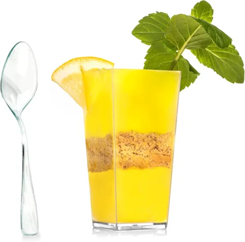 Perfecto para celebraciones elegantes: Imagine organizar una reunión lujosa con nuestras mini tazas de postre con cucharas, que son la solución definitiva para presentar postres elegantes con estilo. Estos recipientes transparentes aportan sofisticación a cualquier evento, dejando que tus creaciones culinarias brillen. Los huéspedes admirarán el encanto de estas tazas, haciendo que su velada sea inolvidable. Calidad premium para una visión clara: nuestros vasos de plástico transparente ofrecen una exhibición inigualable de tus postres, asegurando que cada capa vibrante sea visible y atractiva. Hechas de materiales de alta calidad, estas tazas son duraderas pero elegantes, transformando tu experiencia de postre en una fiesta visualmente estimulante. Vasos cuadrados altos para fiestas: estas 96 tazas pequeñas de plástico transparente con mini cucharas son ideales para cada ocasión; Ideal para cumpleaños, bodas, barbacoas, día de San Valentín, eventos de catering, buffets y para cualquier celebración al aire libre o interior. Vasos de postre reutilizables: nuestros vasos de plástico son lavables, reutilizables, reciclables y desechables. Deséchalos y pasa más tiempo con tus invitados o lávalos para reutilizarlos más tarde. Vasos transparentes irrompibles: las tazas de postre Loreso Tall Cube están hechas de plástico 100% de grado alimenticio, no tóxico y libre de BPA. Estas mini tazas de aperitivo de alta calidad son mucho más convenientes que la cristalería.
