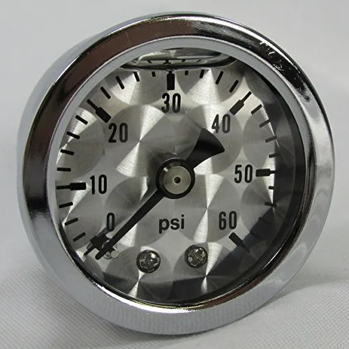 Estos medidores llenos de líquido a prueba de golpes son resistentes a las vibraciones para controlar tu presión de aceite con extrema precisión. La caja de calibre resistente está fabricada en acero inoxidable con interiores de latón. Relleno de silicona para amortiguación de vibraciones con una lente acrílica duradera. Cara de calibre de 1-3/4 pulgadas (incluido el bisel). 0-60 psi 1/8" NPT conexión trasera. Hermosa cara de calibre de estilo "mecanizado/torneado" con bisel de acero inoxidable pulido. También disponible con una cara estilo fibra de carbono. Acabado: cara de calibre – Bisel de acero inoxidable pulido "torneado" a máquina Dimensiones: cara de calibre (con bisel), caja de calibre de 1.75 pulgadas, profundidad de 1.6 pulgadas, 1 pulgada. Ajuste: cualquier bicicleta que acepte las dimensiones mencionadas anteriormente que utiliza un accesorio NPT de 1/8".