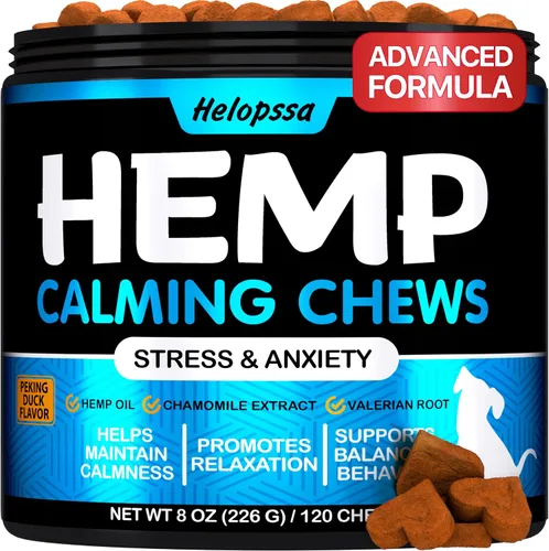 Alivia el estrés y la ansiedad: nuestras golosinas calmantes para perros mantendrán a tu amigo peludo tranquilo y compuesto durante situaciones estresantes, como visitas al veterinario, viajes largos por carretera o quedarse solo en casa Ayuda calmante natural: ¿tu perro muestra signos de dolor e incomodidad mientras se mueve? Nuestras golosinas calmantes naturales para perros proporcionarán un alivio rápido y duradero de las articulaciones doloridas, dolorosas y doloridas Sin efectos secundarios: nuestros masticables calmantes para perros solo ofrecen un efecto sedante suave y no contienen productos químicos artificiales que puedan causar efectos secundarios no deseados Sabor increíble: ¿tu amigo peludo es quisquilloso? Estas golosinas masticables calmantes con sabor a pato harán cosquillas a tu perro cada vez, por lo que ya no hay necesidad de obligar a tu mascota a tragar pastillas Ideal para todas las razas y tamaños de perros: ya sea que seas orgulloso de un pequeño chihuahua o un gran pastor alemán, nuestras golosinas calmantes mantendrán a tu mascota relajada y comportada durante los momentos estresantes.