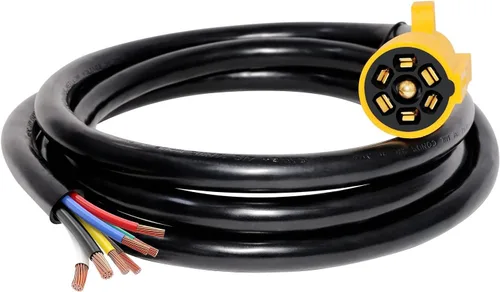Cable de remolque de 8 pies con 7 pines:- Este cable de remolque de 8 pies de largo con enchufe de 7 vías viene con 7 cables de color codificado estándar para RV, adecuado para la mayoría de los cableados de remolque estándar; El enchufe plano de 7 pines para remolque preinstalado es un gran reemplazo para el arnés de 7 pines para RV y es intercambiable con prácticamente cualquier conector de RV de 7 polos Enchufe lateral de remolque de 7 pines: hoja de cobre de 7 vías moldeada en un enchufe de coleta lateral de remolque de servicio pesado para conectar luces traseras, freno, reversa, señales de giro y alimentación auxiliar; Reemplaza directamente el enchufe del extremo del remolque de cualquier arnés de cableado estándar de 7 vías de clavija plana Construido para Durar:- Construido moldeado y hecho de cable de cobre puro estándar UL62 de 10-14AWG, recubierto con una funda de plástico de polivinilo ignífuga y resistente a los rayos UV de servicio pesado que sirve como protección contra elementos exteriores, desgaste. Bien construido enchufe de remolque de 7 clavijas tipo RV Blade con cable interior de cobre aprobado por UL para una conductividad superior. Resistente a la intemperie para uso en exteriores:- Funda de PVC suave y resistente de 7 pines en línea, actualiza fácilmente el cableado corroído del enchufe de luz de remolque de 7 vías en tus remolques, caravanas, cámpers, furgonetas de comida y otros vehículos remolcados Amarillo brillante: su color amarillo brillante único hace que este cable de luz de remolque de 7 pines se destaque en una bolsa llena de otros cables adaptadores de remolque, por lo que es rápido de encontrar