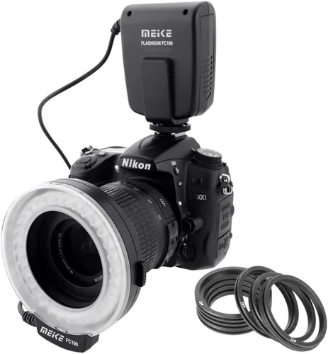 Meike FC-100 - Luz LED para macro anillo, compatible con cámara réflex digital Canon N Pentax Olympus Olympus con anillos adaptadores